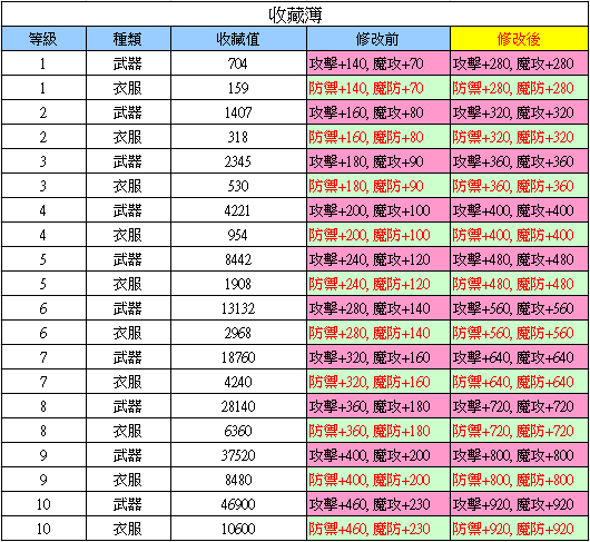 • 所有裝備(含法杖、輕裝、重裝、法袍、盾、披風、飾品)數值調整。