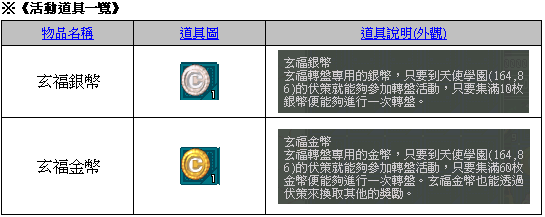 (3) 小天使可從天使商城購買『玄福銀幣』,並與『伏策』對話就可進行『玉龍玄福盤』抽獎活動。