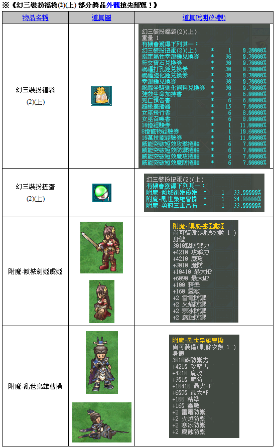 2.天使商城搶購區新增『幻三裝扮福袋(上)』、『幻三裝扮福袋(2)(上)』