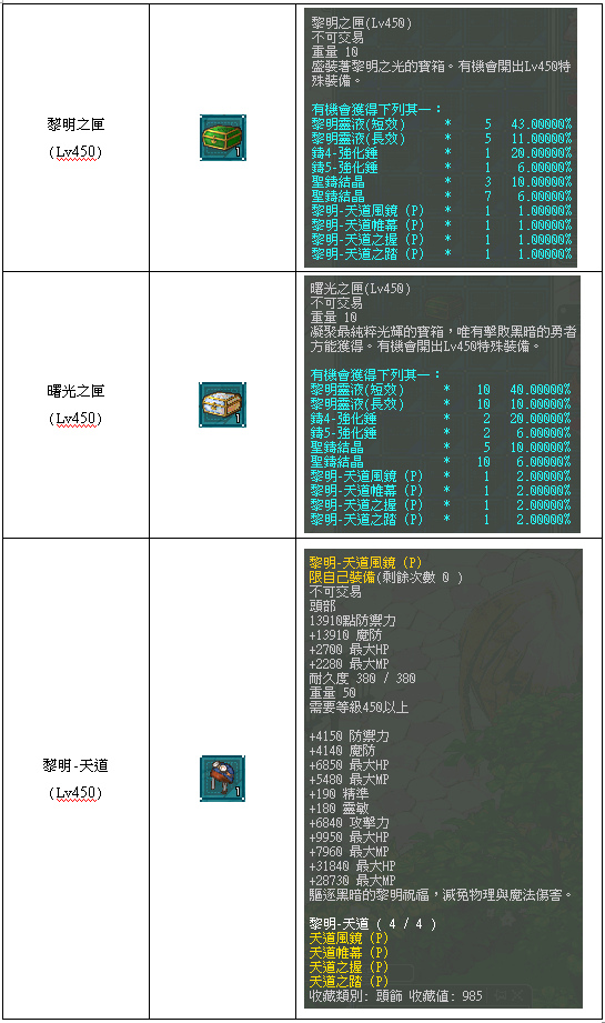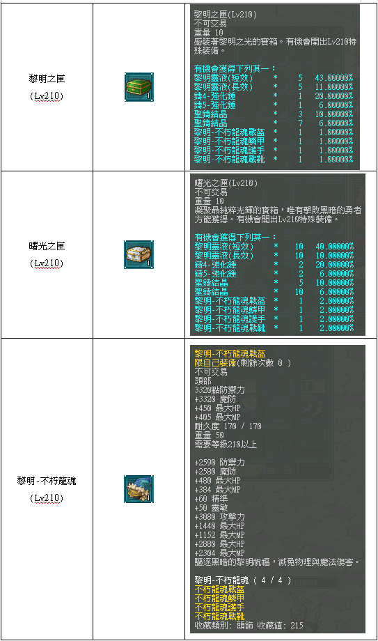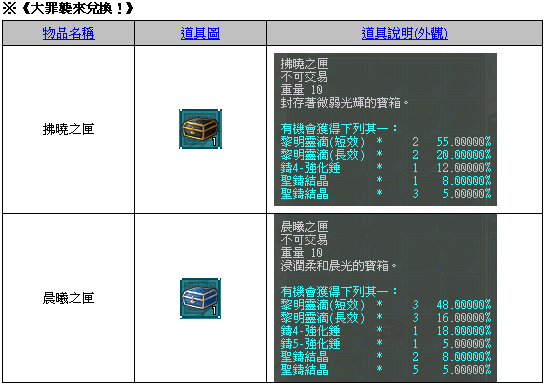(5)世界王獎勵分別有『拂曉之匣』、『晨曦之匣』、『黎明之匣』、『曙光之匣』,其中『黎明之匣』、『曙光之匣』會針對世界王獲得相對應的等級的『黎明之匣』、『曙光之匣』,並有機會獲得世界王專屬黎明裝備。