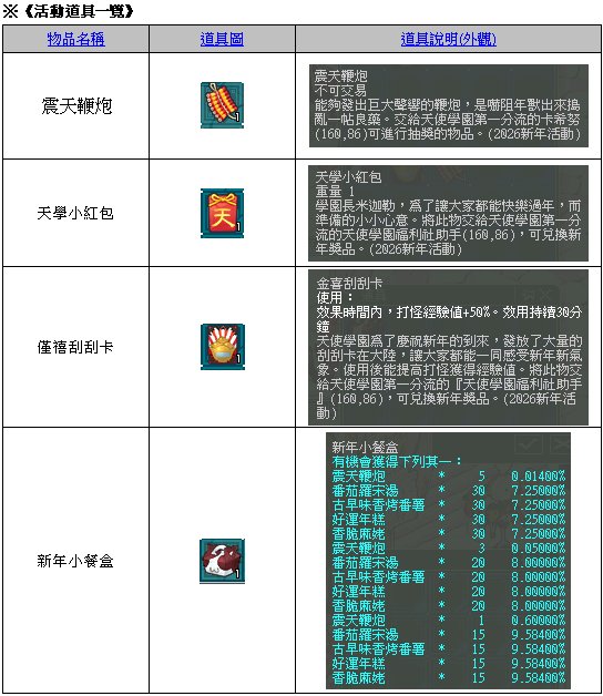 (1)活動時間:2026/02/04(三)至2026/03/04(三)關機維護前,共四週,NPC於活動結束後,將續留一週提供兌換服務。