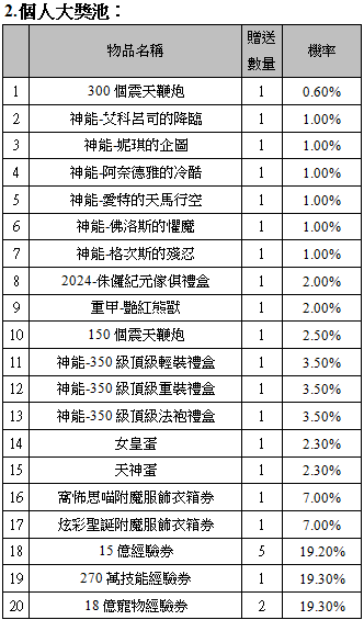 (3) 小天使只要將「2,000萬天使遊戲幣」捐給『果香村村長』,就可獲得多項謝禮回報。