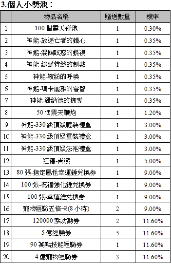 (5)活動期間在祕境與副本以外地區消滅21級以上怪物,或採集21級以上物產有機會獲得『金喜刮刮樂』。