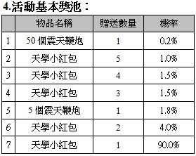 (4)抽獎活動所抽到的『天學小紅包』可向天使學園NPC『天使學園福利社助手』兌換『羽護』及『煌禦』背包以及其他精美好禮。